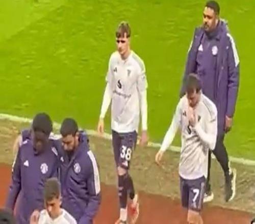 曼塔托首次入选一线队名单,赛后B费搂着他肩膀一起回更衣室
